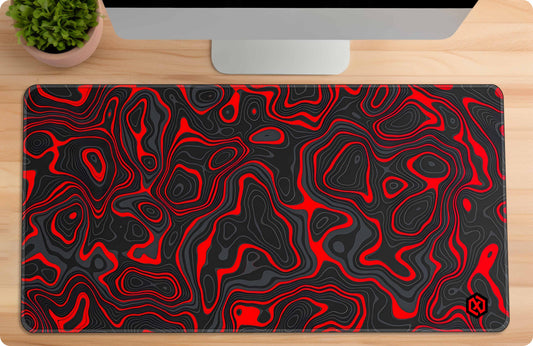 Abstract Fluid Waves Deskmat - Cool Red Contour Lines