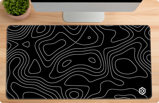 Abstract Fluid Waves Deskmat - Cool Black Contour Lines