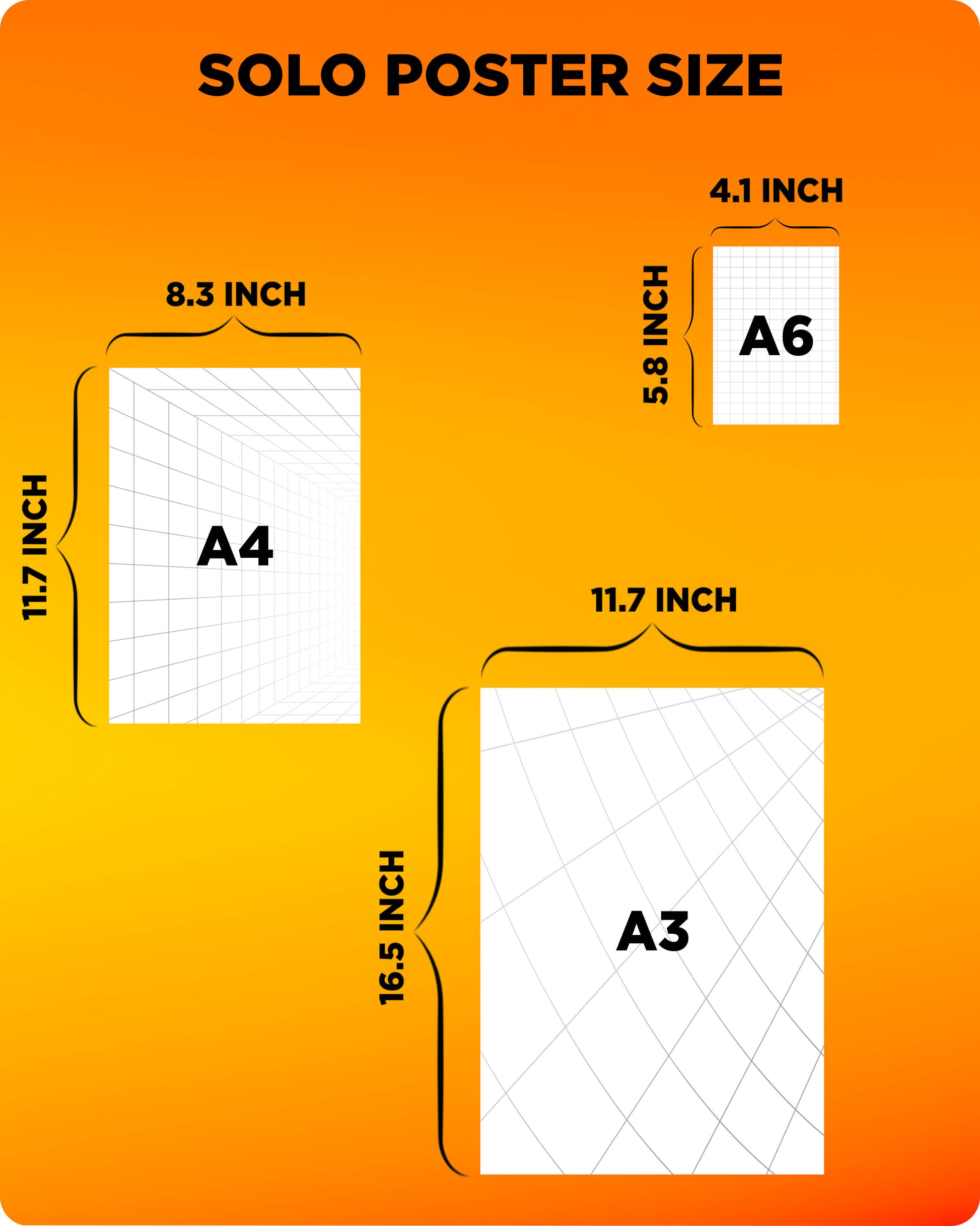 We offer A3 and A4 solo posters, split poster combos in both sizes, and mini posters in A6.